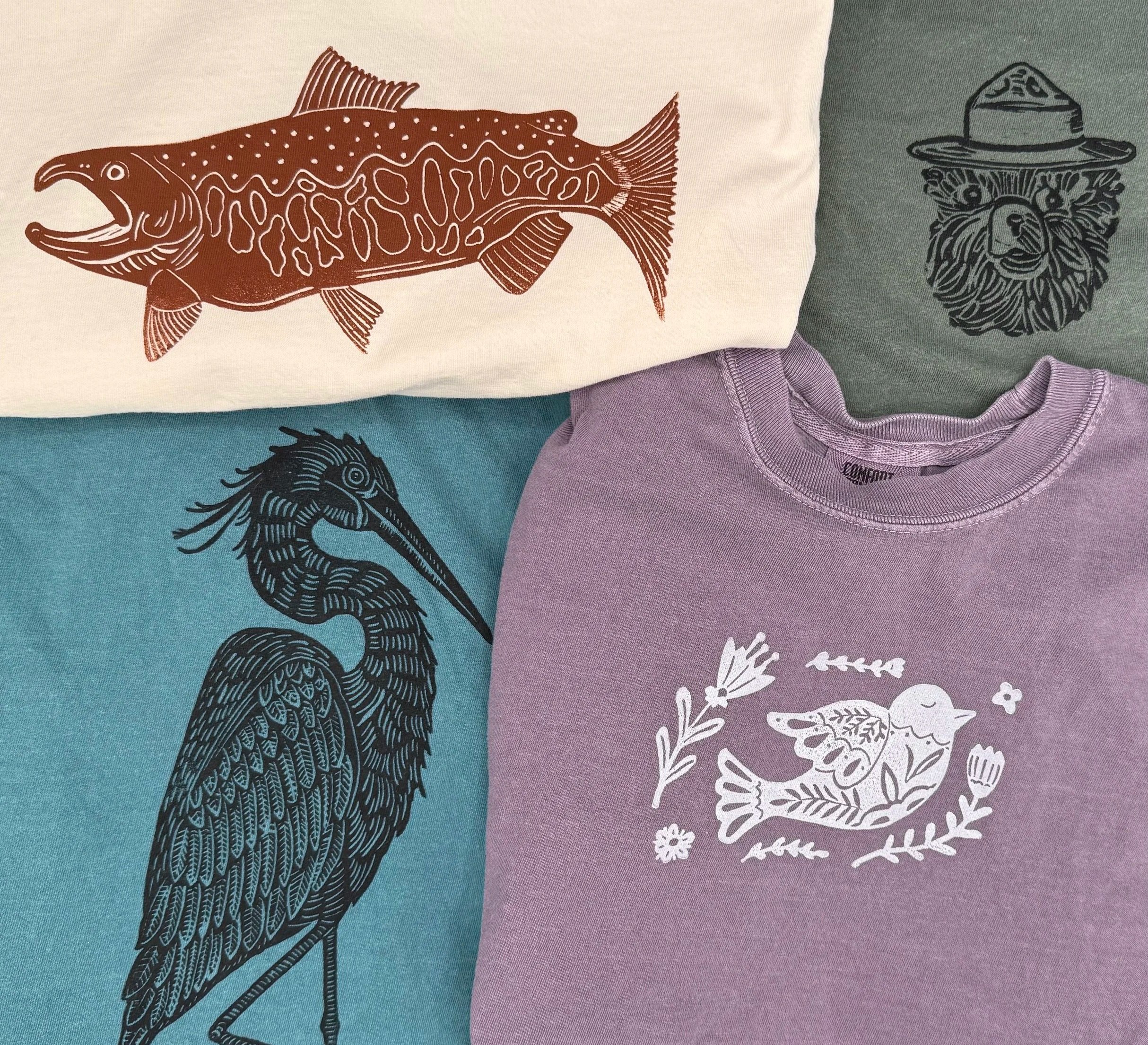 Hand Printed T-shirts Shop Relief Prints Shop Come shop in person! * Come shop in person! * Come shop in person! * Events